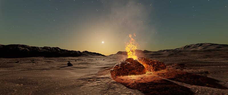 Auphaibs OY-Y d1-21 B 1, named Jino's Spires in memory the discoverer's late brother, is a high metal content planet in the Formorian Frontier, with a carbon dioxide atmosphere, a gravity of 1.23 g, and an average temperature of 253 K - and surface life: Crystalline shards with polonium are present on the planet. On the planet you can also find silicate magmal ava spouts: and silicate vapour fumaroles: The light of the class A star shining through the carbon dioxide atmosphere can create picturesque views. | → | Auphaibs OY-Y d1-21 B 1, named Jino's Spires in memory the discoverer's late brother, is a high metal content planet in the Formorian Frontier, with a carbon dioxide atmosphere, a gravity of 1.23 g, and an average temperature of 253 K - and surface life: Crystalline shards with polonium are present on the planet. On the planet you can also find silicate magma lava spouts, and silicate vapour fumaroles: The light of the class A star shining through the carbon dioxide atmosphere can create picturesque views. |