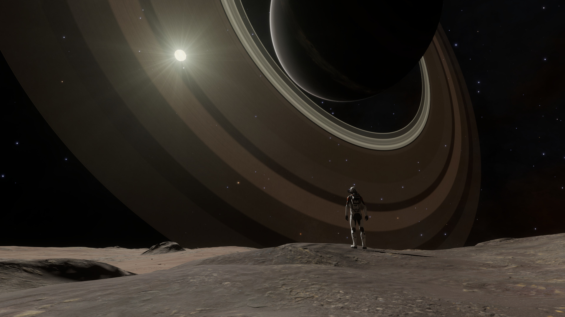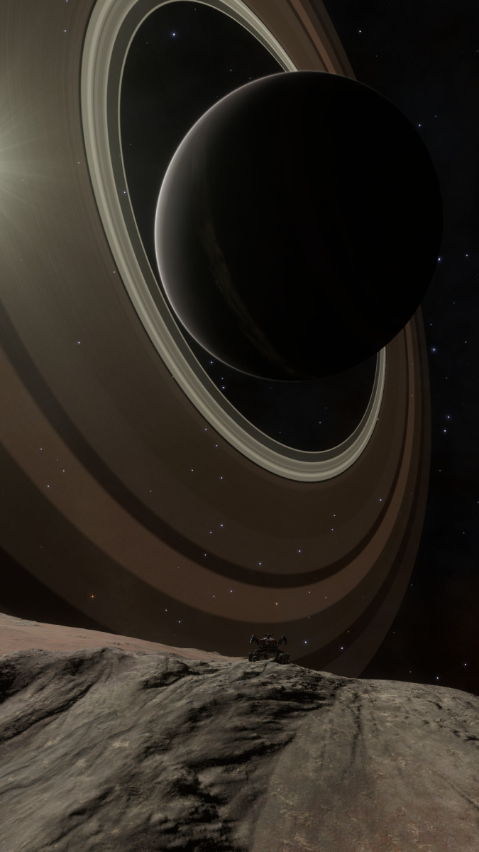 Summary: A moon whose orbit takes it high above the ring of a gas giant. | |