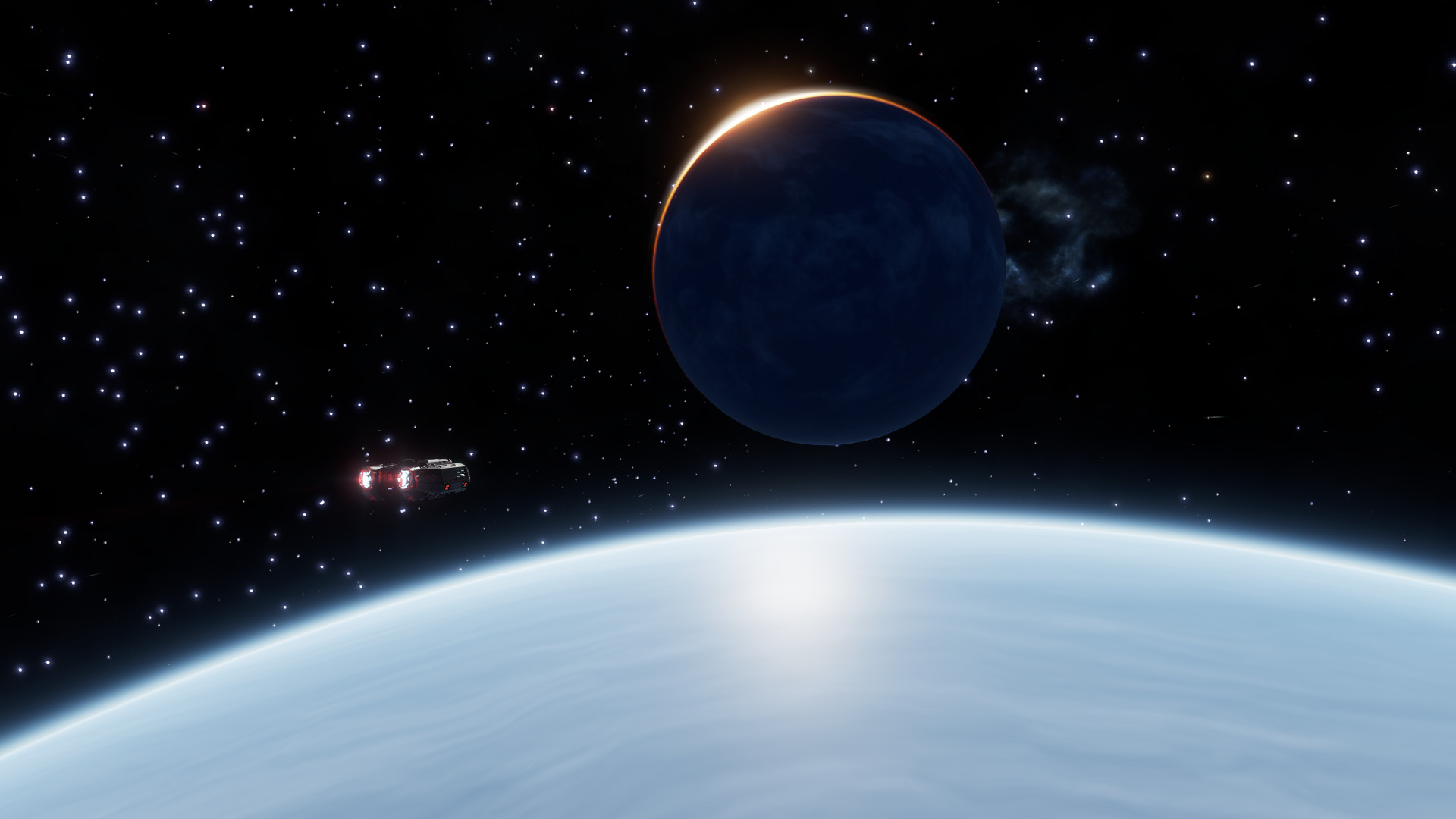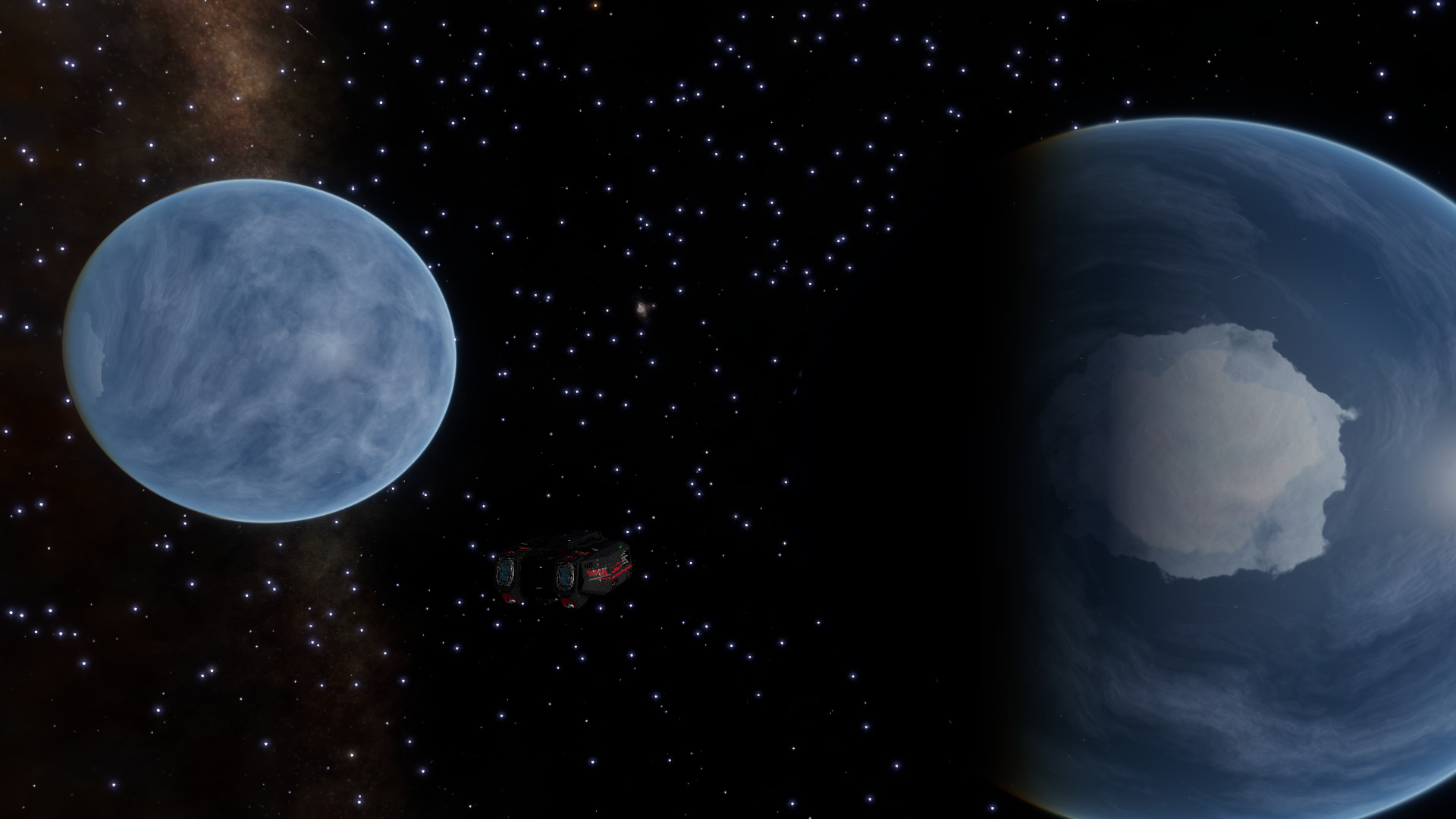 Description: A binary pair of Water Worlds around a Herbig Ae/Be protostar. Young star systems such as these rarely house Water Worlds, so a binary pair of them is even more rare. Poseidon, the Greek god of the sea, and his wife Amphitrite seem to be the perfect name for this pair of water worlds in a close orbit with each other. The distance between both planets is roughly only 0.13 light seconds. The first planet weighs 2.8 Earth Masses, while the second 2.6 Earth masses and both are candidates for terraforming. The pair is only 74 light seconds away from the central Herbig Ae/Be star, which has 10 solar masses. | |