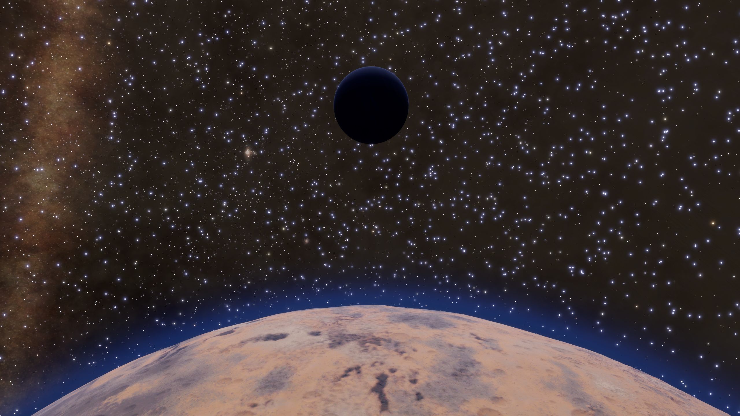 Note that Osseus Discus is only present on the inner moons, from 4 a to 4 e. It seems that the outer moons didn't have enough tectonic activity to house these. However, even on some of these moons, they are confined to tiny areas. The innermost moon is somewhat close to the parent gas giant, so it can provide some nice views. A blue planet in a blue sky. Two of the moons, 4 h and 4 i, also orbit each other, forming a binary pair. They are close enough that the blue atmosphere of their paired moon is visible from their surfaces. Also, note that the galactic centre is quite close by, and exobiologists need only travel around 2,300 ly to sell their samples for their full price at Explorer's Anchorage. | |