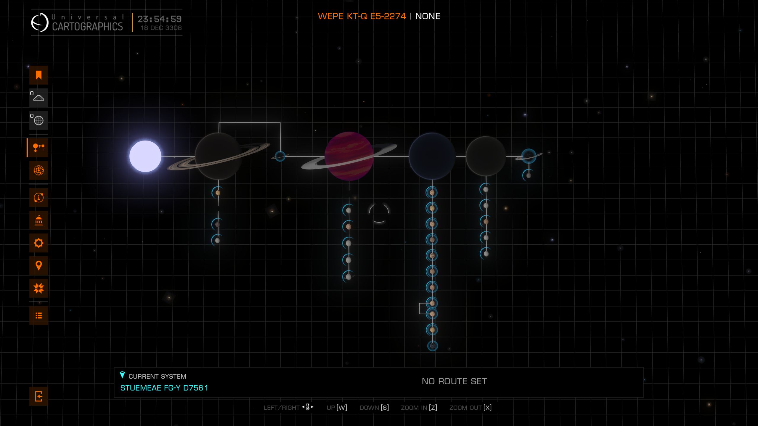 Description: Wepe KT-Q e5-2274 was first discovered near the end of 3306, and it went unremarked by its discoverer at the time: just another neutron star system, with a number of gas giants and moons. Its significance was only realised later, while going through exploration data and cataloguing Thin Water Atmosphere planets: as of 3308/12/14, this system is the record holder for the largest amount of landable Thin Water Atmosphere bodies in one system, as well as the most around one body. The fourth gas giant is orbited by 11 moons, all of which have a thin water atmosphere, and 10 of which are landable. Only the farthest moon isn't, and that's because it has a surface pressure of 0.11 atm. All of them are rocky moons of the class III gas giant, and they have the following species present: