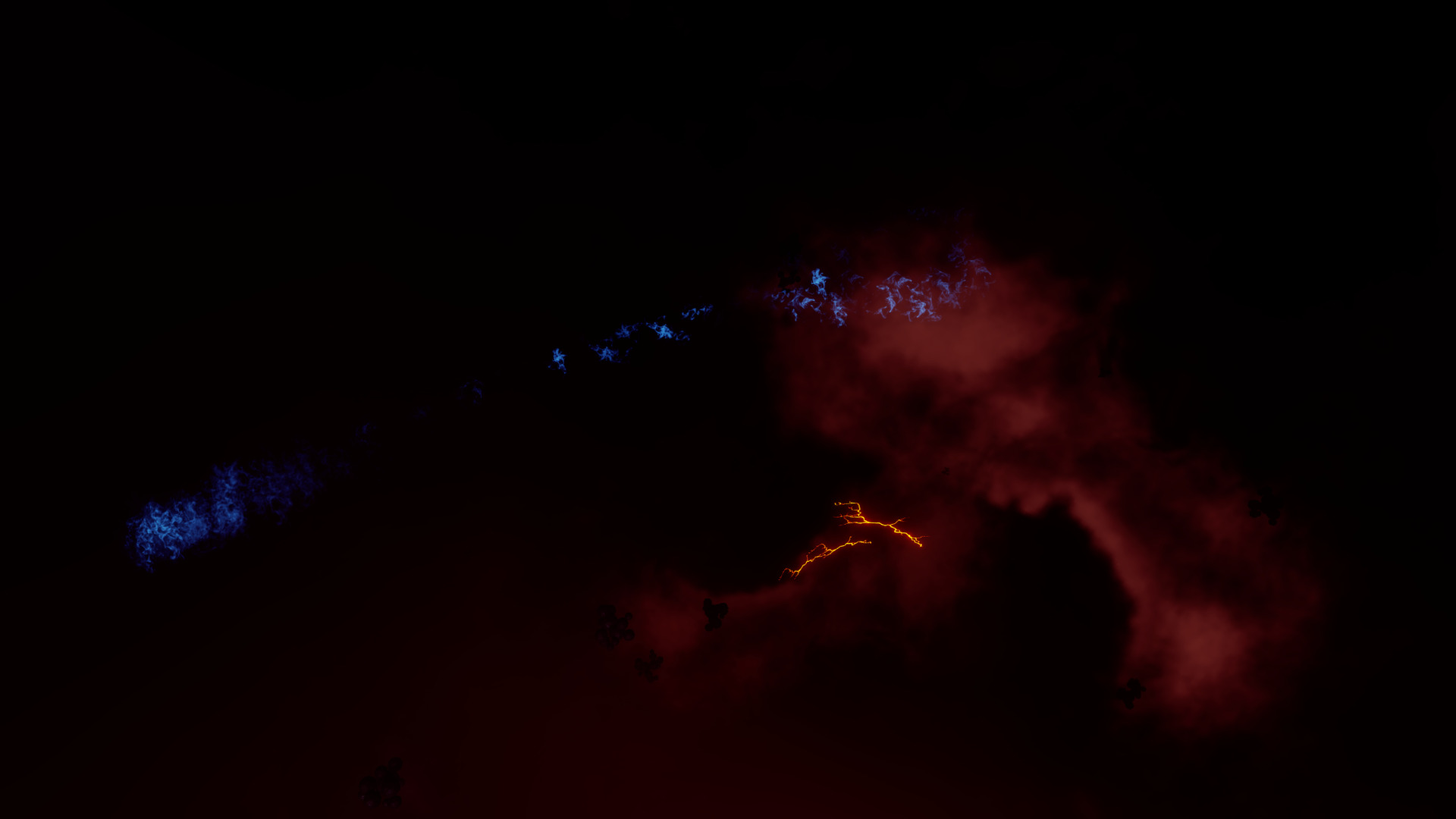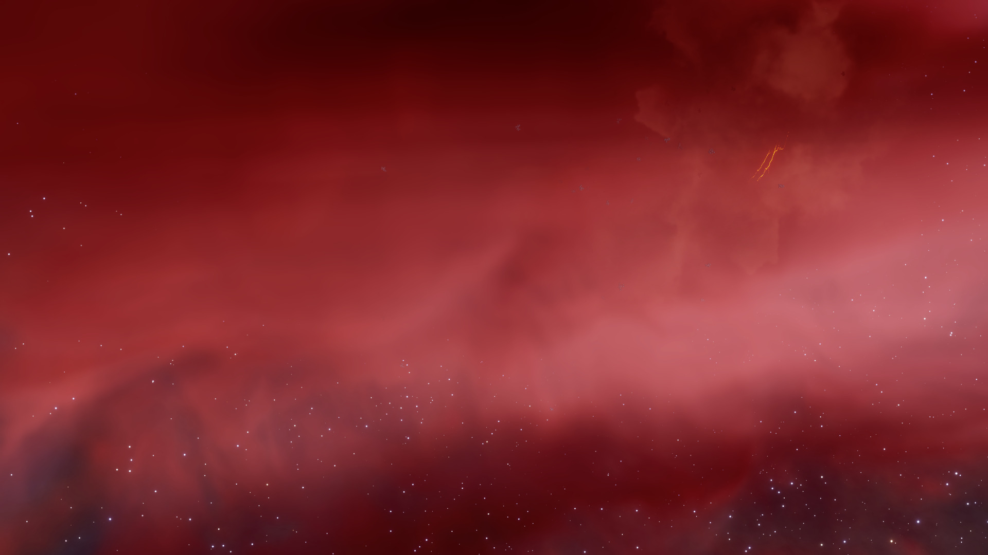 Description: Phleedgaa UJ-Q e5-185, nicknamed the Susano'o nebula after the Shinto god of storms and seas, is at first glance just one of the many planetary nebulae in the Izanami region. What makes it stand out from the rest are the stormy Lagrange clouds that can be found within the system, and the wisp-like E03-type Anomalies that dwell within them. (Which can also be found in systems that meet the spawn criteria up to 100 ly away from the nebula.) These Anomalies are small, and as their blue light is rather faint, most of the time they can only be seen clearly against a darker background. They tend to wander around, and are often noticed only by the trail they leave behind as they weave through the clouds. Commanders can approach these lights safely: the only effect they have on ships is that they scramble the ship's displays at close proximity, but they cause no lasting harm otherwise. The wisps also emit vaguely unsettling noises: however, if they are encountered within the storm clouds, this can be difficult to hear over the thunder. According to the Codex, these Anomalies will follow for a short time any ship that approaches them. Recent observations have shown however that they seem to "lose interest" almost immediately. Some Commanders have claimed that the wisps attract thunder strikes, but this is surely just superstition. However, flying into the electrically active regions and getting hit by the lightning can be dangerous. Most ships should be able to withstand them long enough to leave the electrically active parts of the clouds, but it's best not to linger. The stormy cloud around the first planet (Phleedgaa UJ-Q e5-185 1) is the one that's the most visually striking, as its centre is entirely dark. The only light that can be seen within it is the system's neutron star, and the occasional Anomalies flying around. Around other Lagrange clouds, such as the one in orbit of the third planet, the Anomalies might not appear blue, as the cloud tints their colour: Other E03-type Anomalies can be found at Lagrange points around neutron stars within 100 ly of the planetary nebula, which is an oddly large radius: for most other Anomalies, it's 10 ly instead. However, as of 3309 March, storm clouds have only been found inside the nebula proper. | |