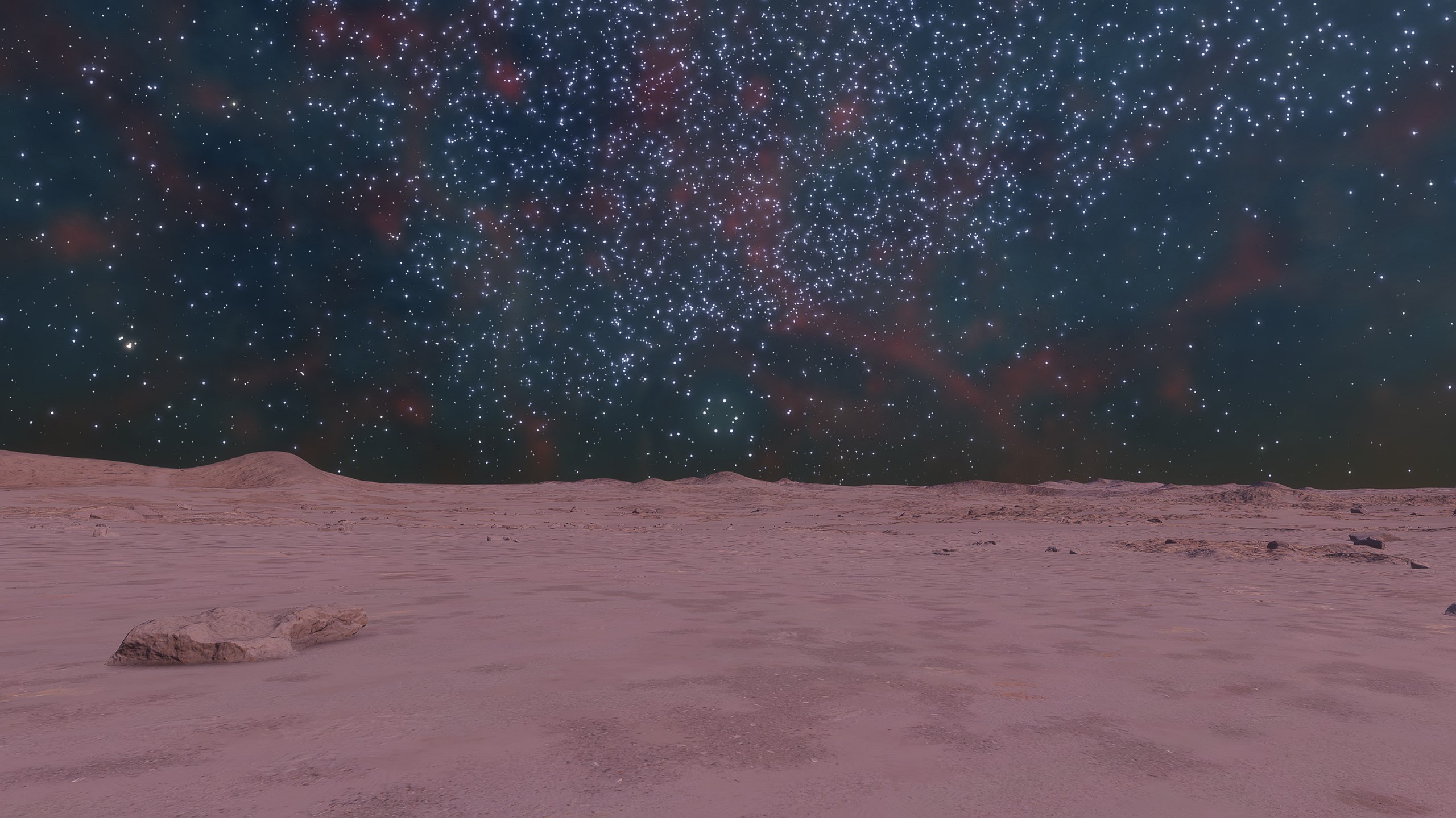 Description: When approaching this star system, the planetary nebula that's the remnant of a supernova is visible from afar. Once inside, there are two dwarf stars orbiting the remnant black hole. Both of them have many satellites, plenty of them landable. One of the moons has a thin atmosphere, and its surface offers an incredible of the many stars of the galactic core, viewed through the planetary nebula left after the supernova. | |