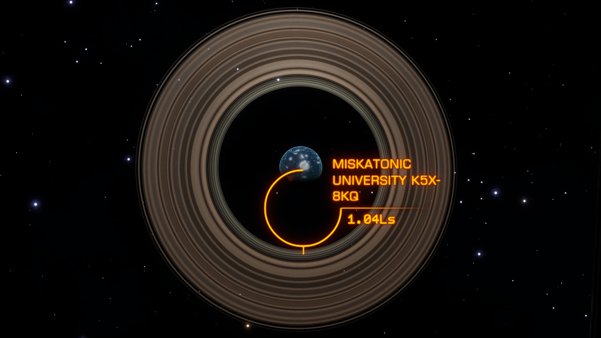 Description: The DSSA fleet carrier, Miskatonic University, is stationed near the rings of a beautiful Earth-like World that orbits binary class III gas giants. The system was first discovered during the Minerva Centaurus Expedition. In addition to the aforementioned worlds, the system hosts a ringed Class III gas giant with ten moons, two of which are nested moons. Three of these bodies have surface geological activity, in the form of Major Silicate Vapour Geysers, which can be a good source of materials. Originally the system was served by the DSSA #159 "The Late Show", which was deployed on May 31st 3308. The carrier was decommissioned on the 19th May 3310, and soon after, a carrier from the centuries old Earth institution, the Miskatonic University, was pressed into service. The carrier provides all services mandated by the DSSA, as well as a bar, and provides views of the Earth-like World and its rings from the bridge and the bar area. The carrier has suffered from very poor ratings on ShipAdvisor mainly due to poor hygienic practices and the crew who are reported to be uncommunicative, or gutteral at best, and have what has been described as a characteristic "Innsmouth look". | |
