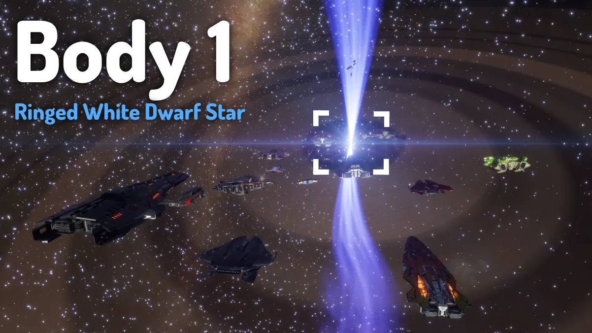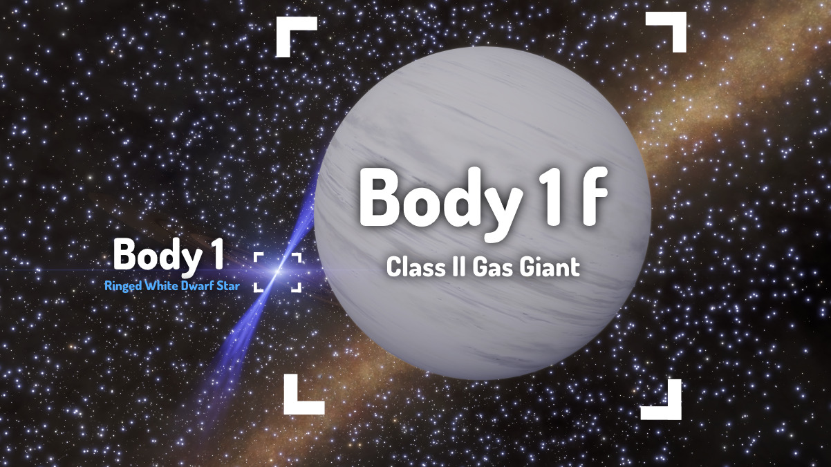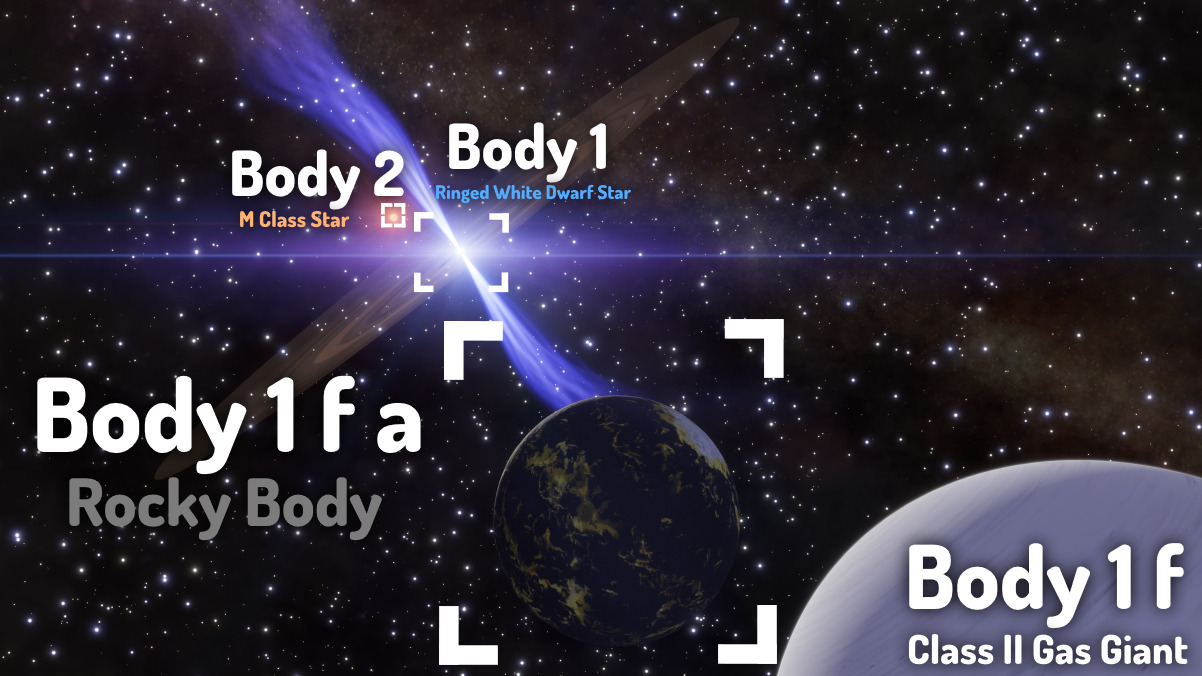 Summary: A ringed white dwarf star in a binary orbit with an M class red dwarf star. It has multiple bodies nearby for sightseeing including a landable body with volcanism close to the ringed white dwarf. | |