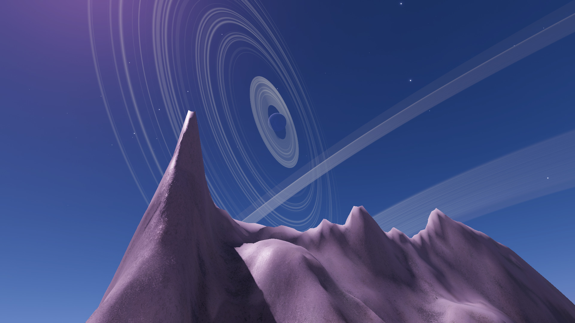 Summary: A ringed moon with an oxygen atmosphere, orbiting a ringed blue gas giant on a high inclination and at a close distance. | |