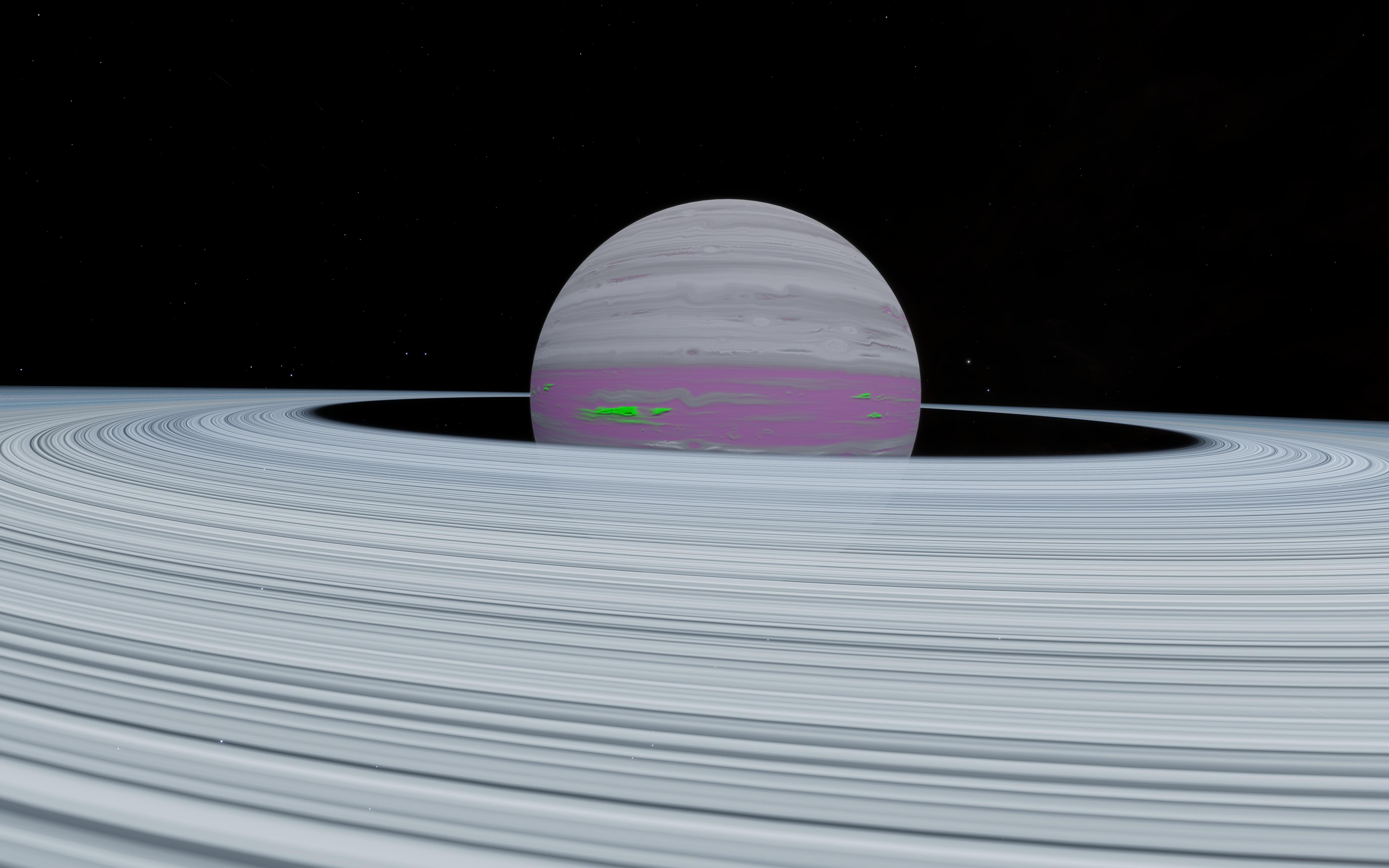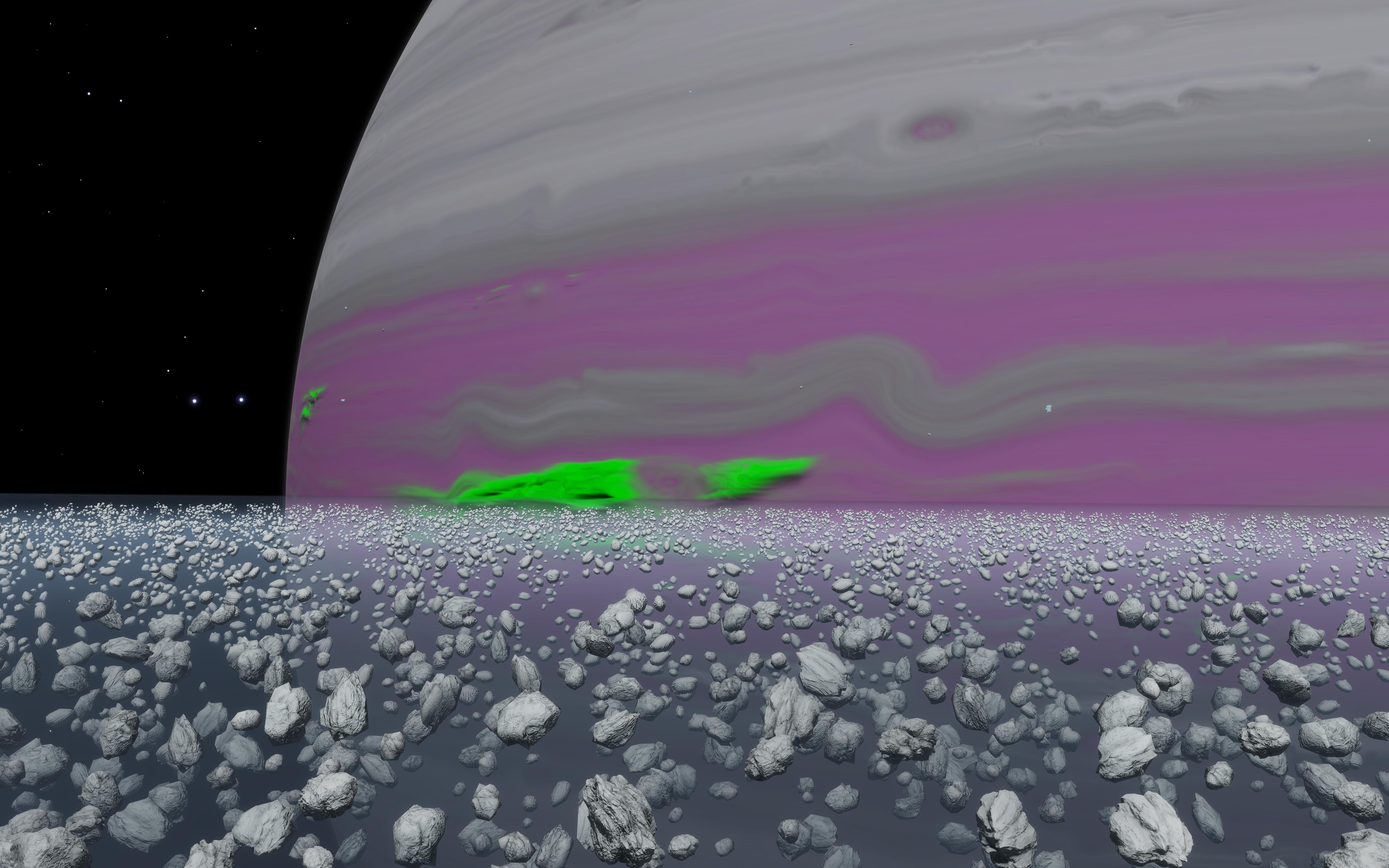 Description: This Green Gas Giant is a striking example of a Class II Green Gas Giant, displaying more pink and green coloring than most other such planets. It is located only 2,000 ly north of Sol, making for a quick trip. It also has a wide and colorful Icy ring, with 10 mining hotspots, including one for Tritium. | |