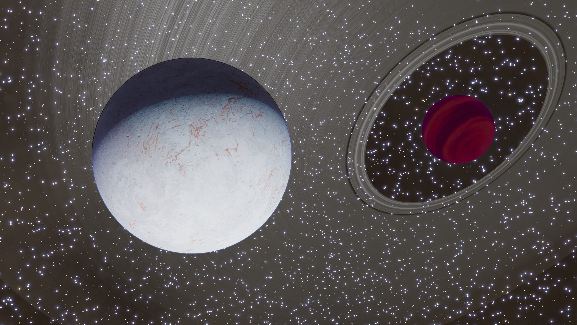 Summary: A thin oxygen atmosphere moon on a mighty eccentric orbit around a ringed Class Y dwarf star. | |