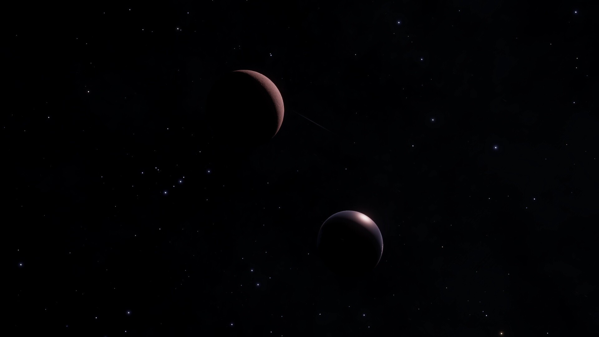 Summary: A close binary pair of planets, a Water World and a landable High Metal Content world, orbiting their shared barycenter quite closely. | |