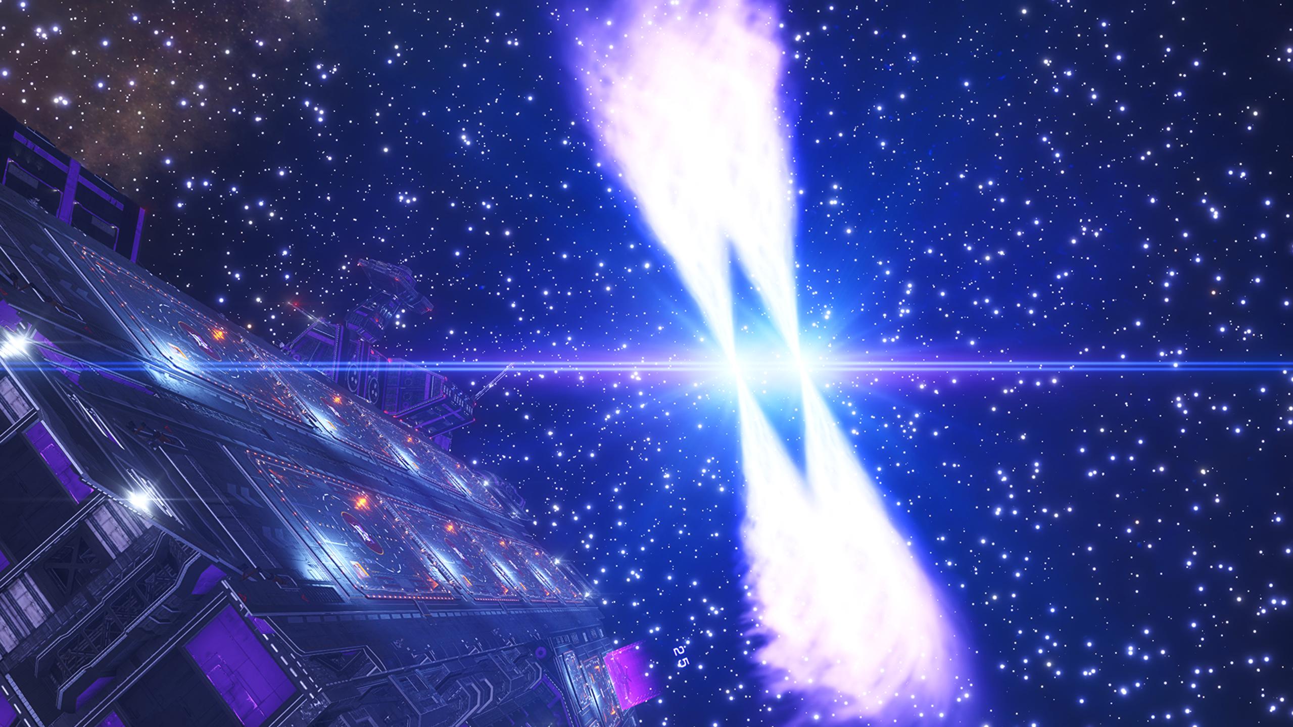 Description: The main feature of this system is a binary pair of black holes orbiting each other within 5 ls, while a binary pair of neutron stars is only 20 ls away. The stars are close enough to each other that one can stay in both of their jet cones. A number of planets co-orbit these four bodies: several ringed Class V Gas Giants, and ringed bodies close enough to each other than their rings are visible from the surface. Two of the landable ringed planets (ABCD 4 and 6) also have surface volcanism. Fleet carriers parked in orbit of either of the black holes can get spectacular views of the one they're orbiting and the neutron star pair. | |