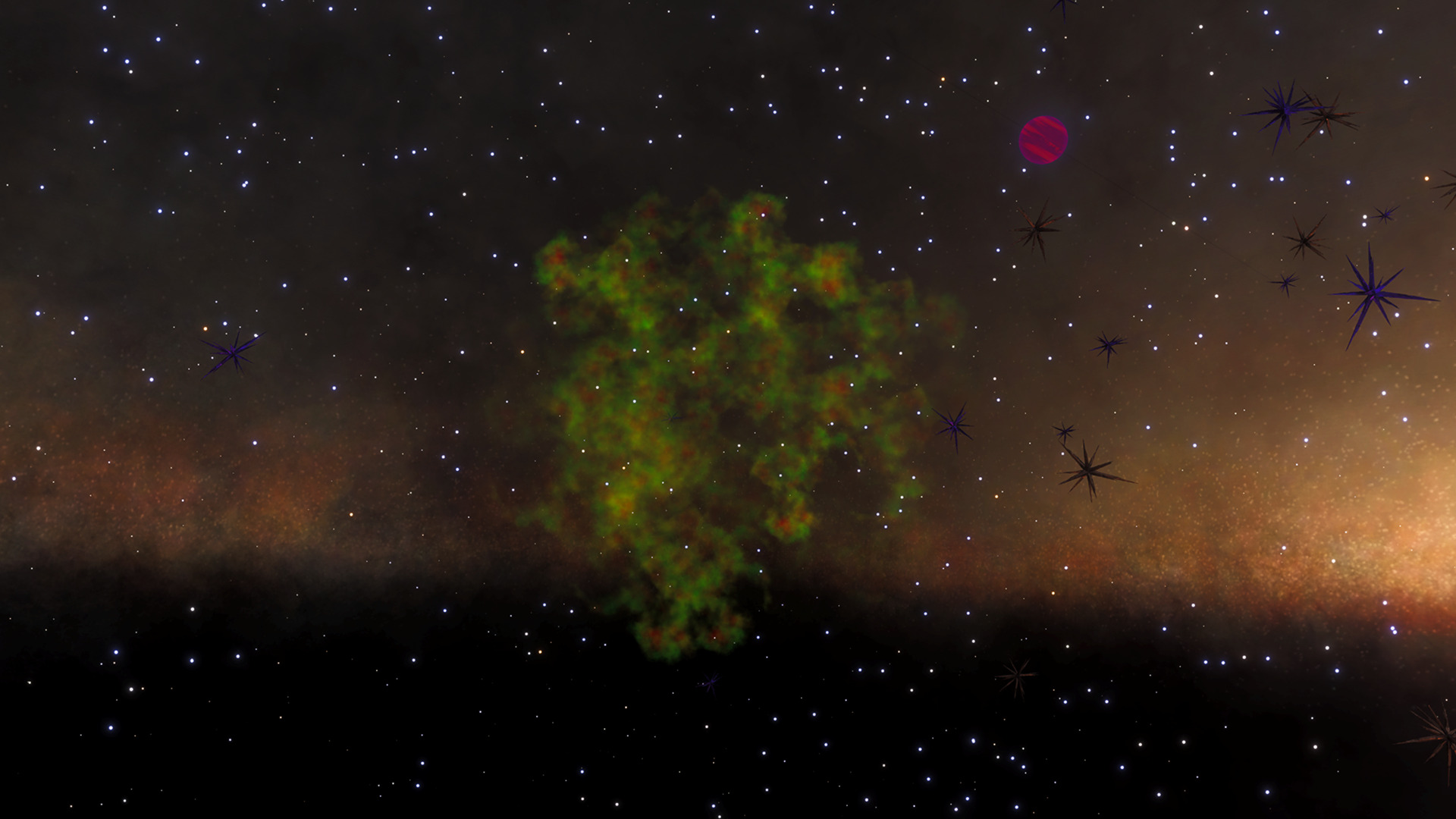 This system is within the Wepaa Anomaly zone and has a black hole, but the main highlight to see here are the K01-Type Anomalies that directly orbit the neutron star. The wisps (and Metallic Crystals) set against the backdrop of the star's jets offer good opportunities for photographs.