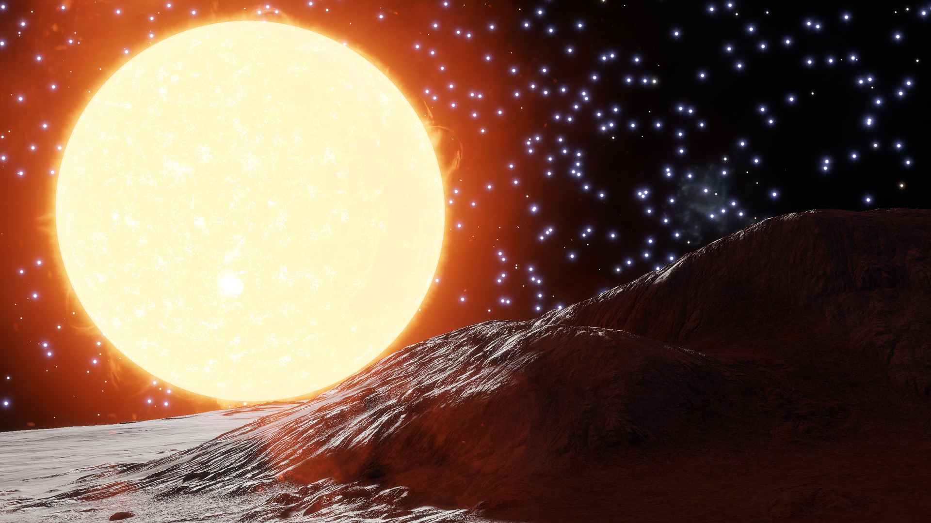 Bodies 2 and 4 are both Class K orange-yellow stars with 0.55 solar mass and 0.66 solar mass, respectively. Each of these stars hosts a collection of rocky worlds, and while some of these planets have atmospheres, none have any form of exobiology. Bodies 2 a and 4 a each have volcanic activity owing to tidal forces from their parent stars. The planets around each of these stars offer good views of gravitational lens effects around the black hole, though these pale in comparison to the view near its exclusion zone.