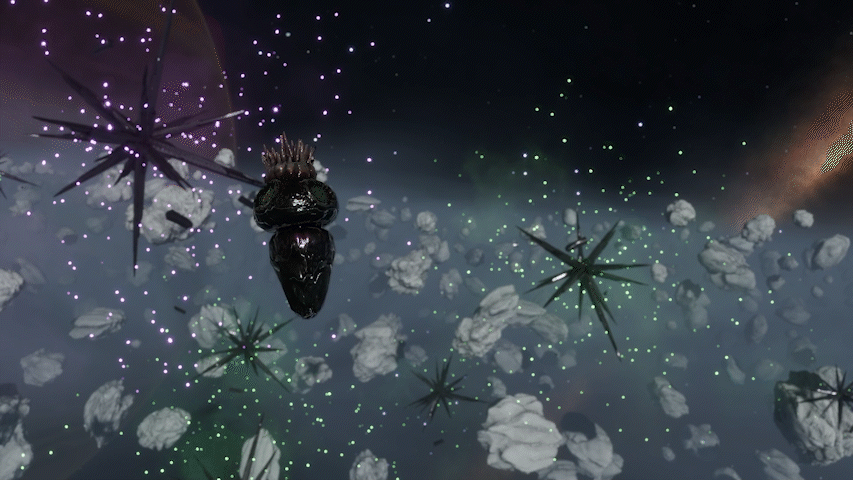 The reefs are home to Roseum Squid Molluscs, a species of cosmozoan found throughout the Formorian Frontier. Unlike gourd molluscs, which are found throughout the Inner Orion Spur, these molluscs will immedately retreat from ships' headlights. Weapons fire will also cause the molluscs to withdraw, though it doesn't appear to actually harm the creatures. | |